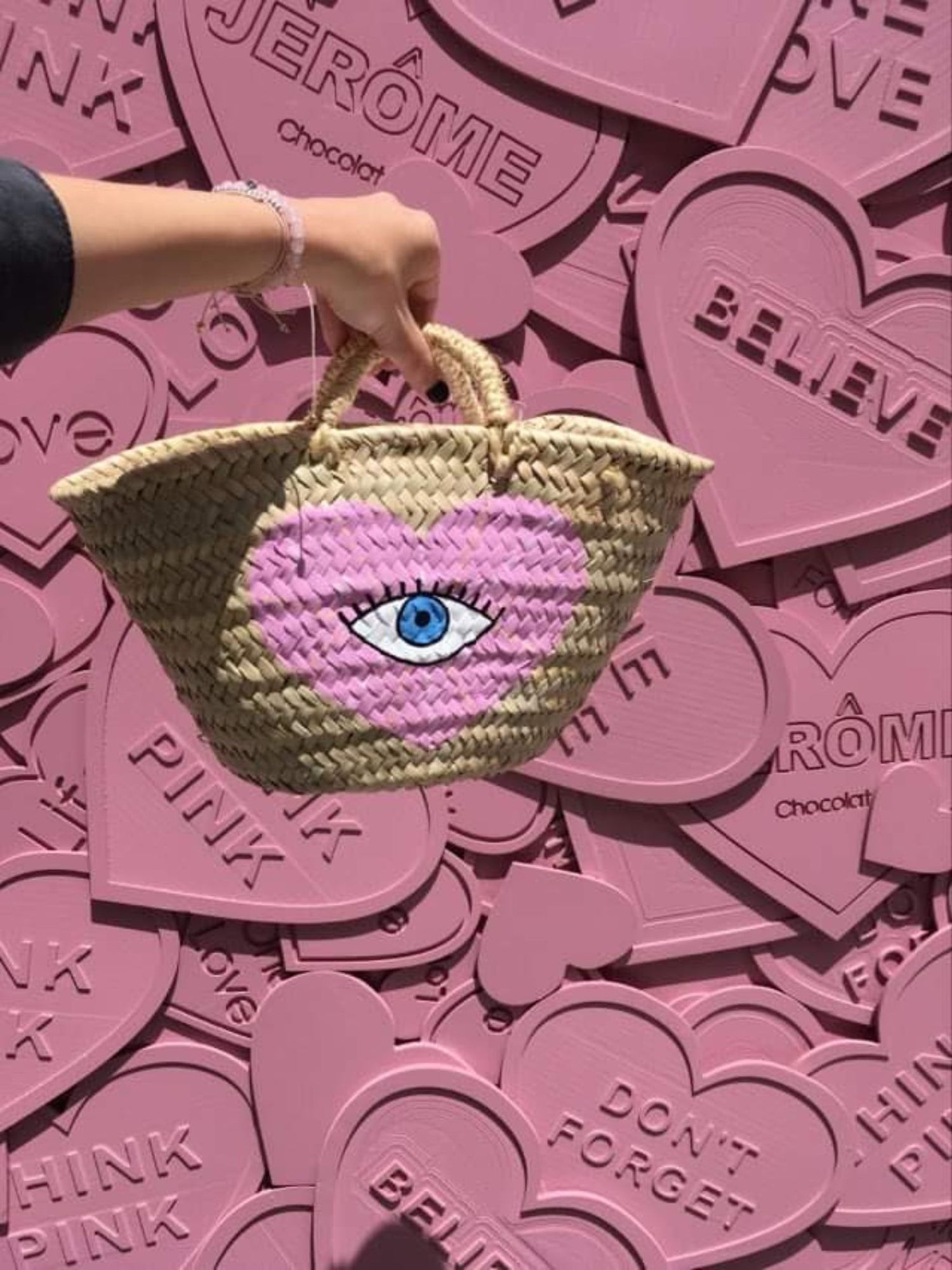 Von Hand geflochten in Marokko. Von Hand bestickt oder bemalt in Stuttgart. Jedes Körbchen entsteht zu 100 % in Handarbeit und ist ein ganz besonderes Produkt.