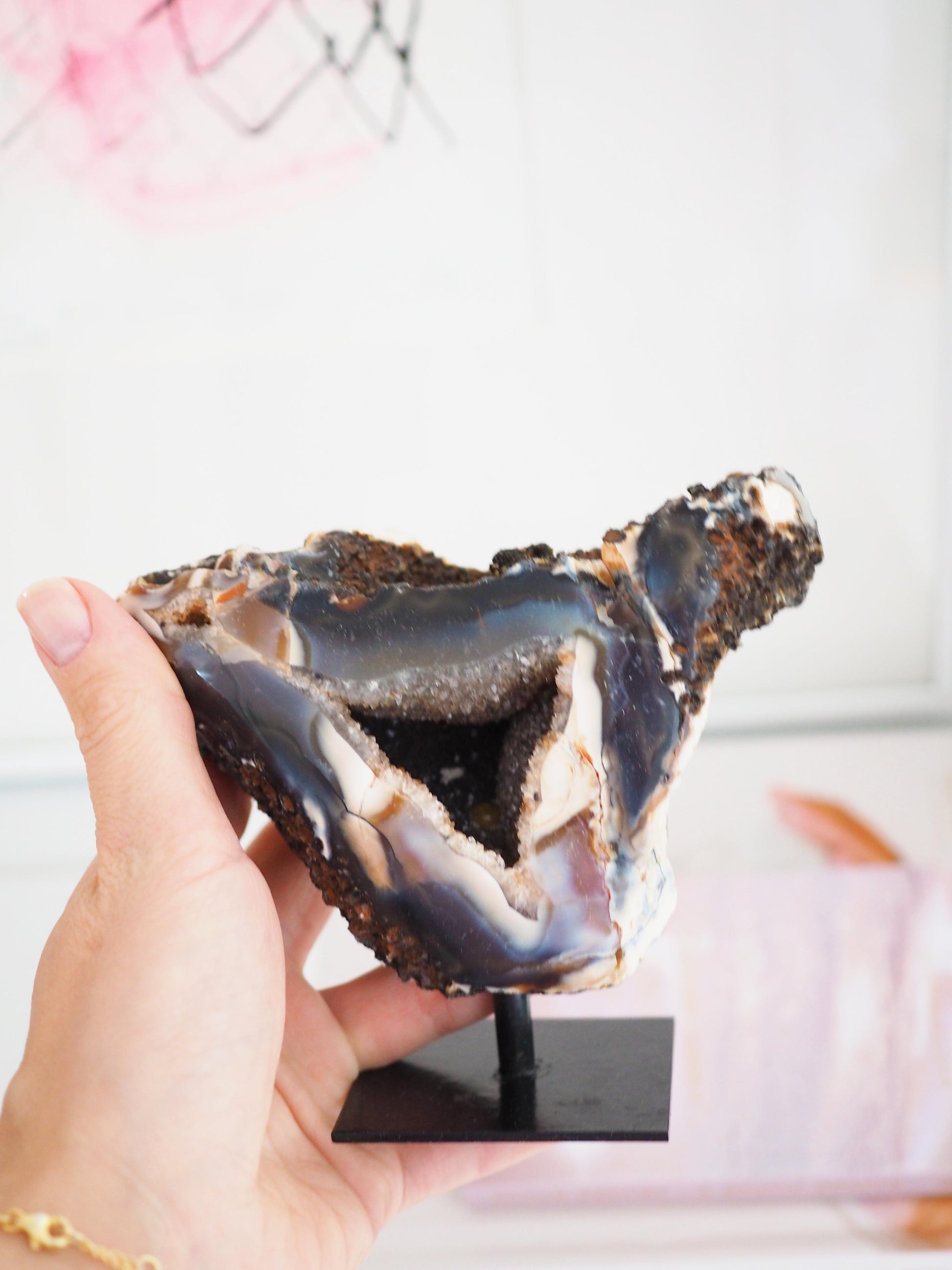 Druzy Achat X Chalcedon auf Halter ca. 11x12 cm - aus Brasilien HIGH QUALITY