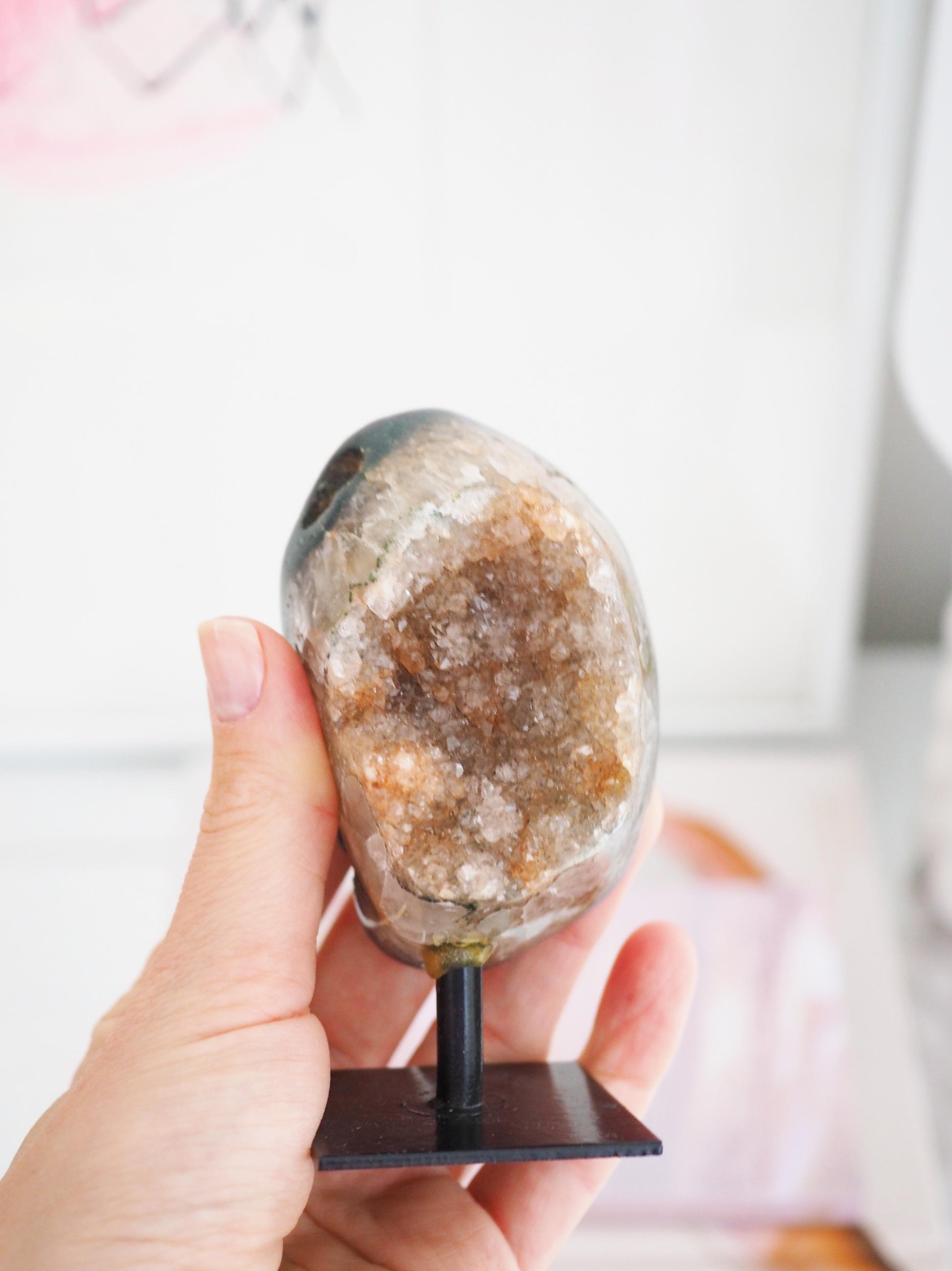 Orangener Rainbow Amethyst auf Halter ca. 10 cm - aus Brasilien HIGH QUALITY