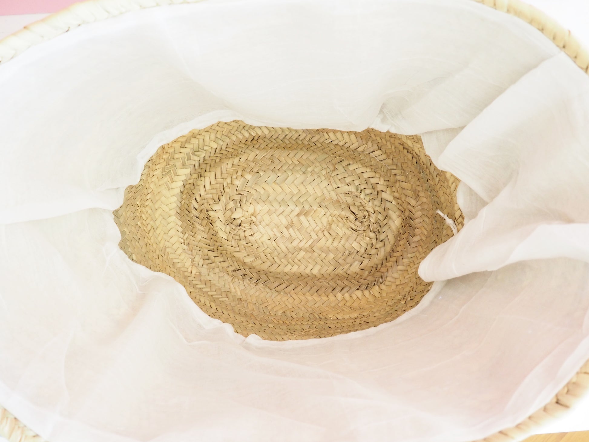 x Korb aus Doumblatt. Inlay aus Baumwolle zuziehbar.