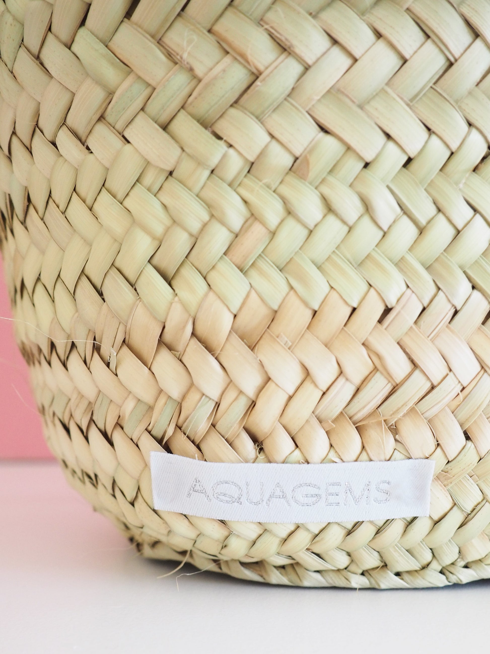 Unten links ist unser Label angebracht. Die Korbtasche hat einen kurzen und einen langen Henkel aus Ziegenleder. Er kann bequem über der Schulter und in der Hand getragen werden.