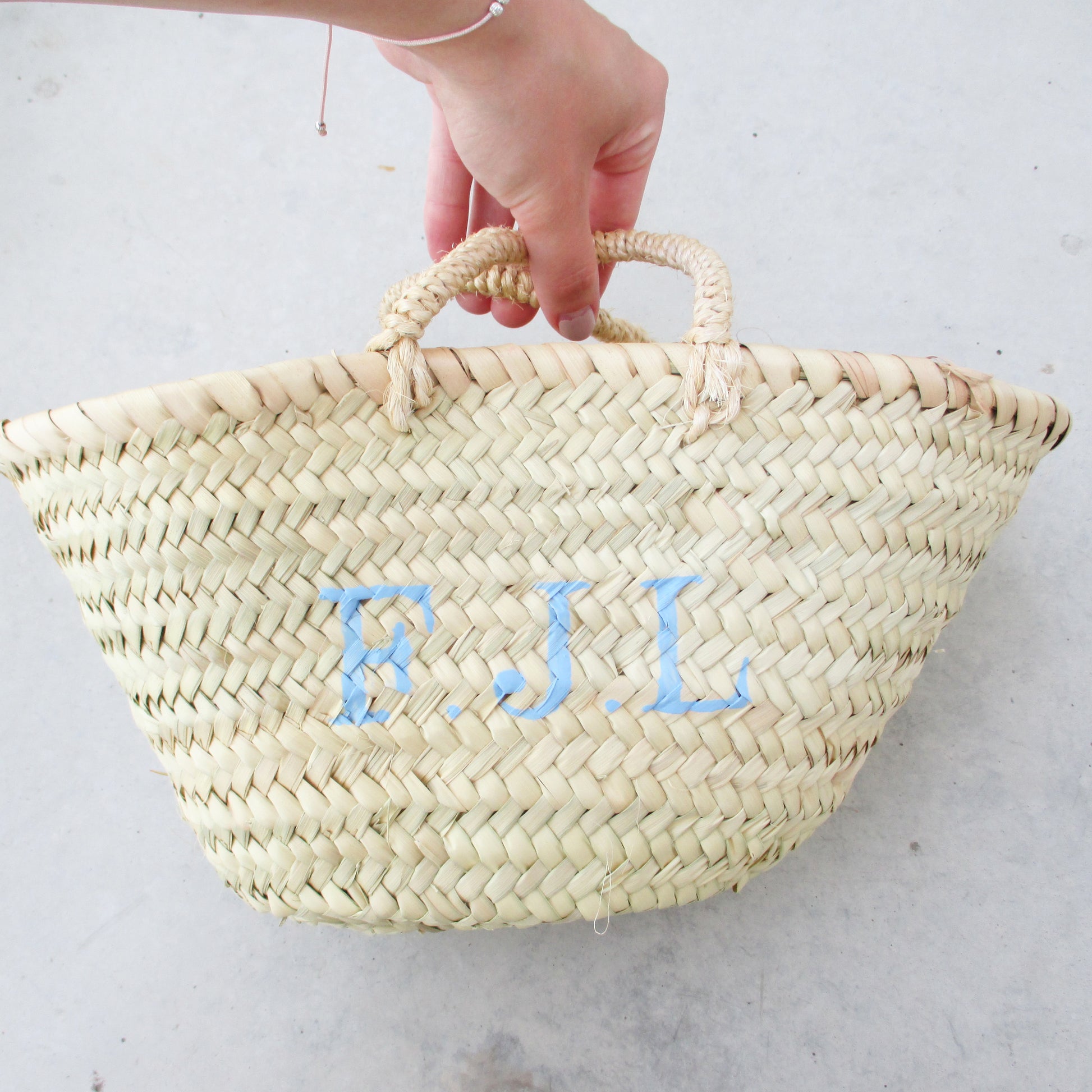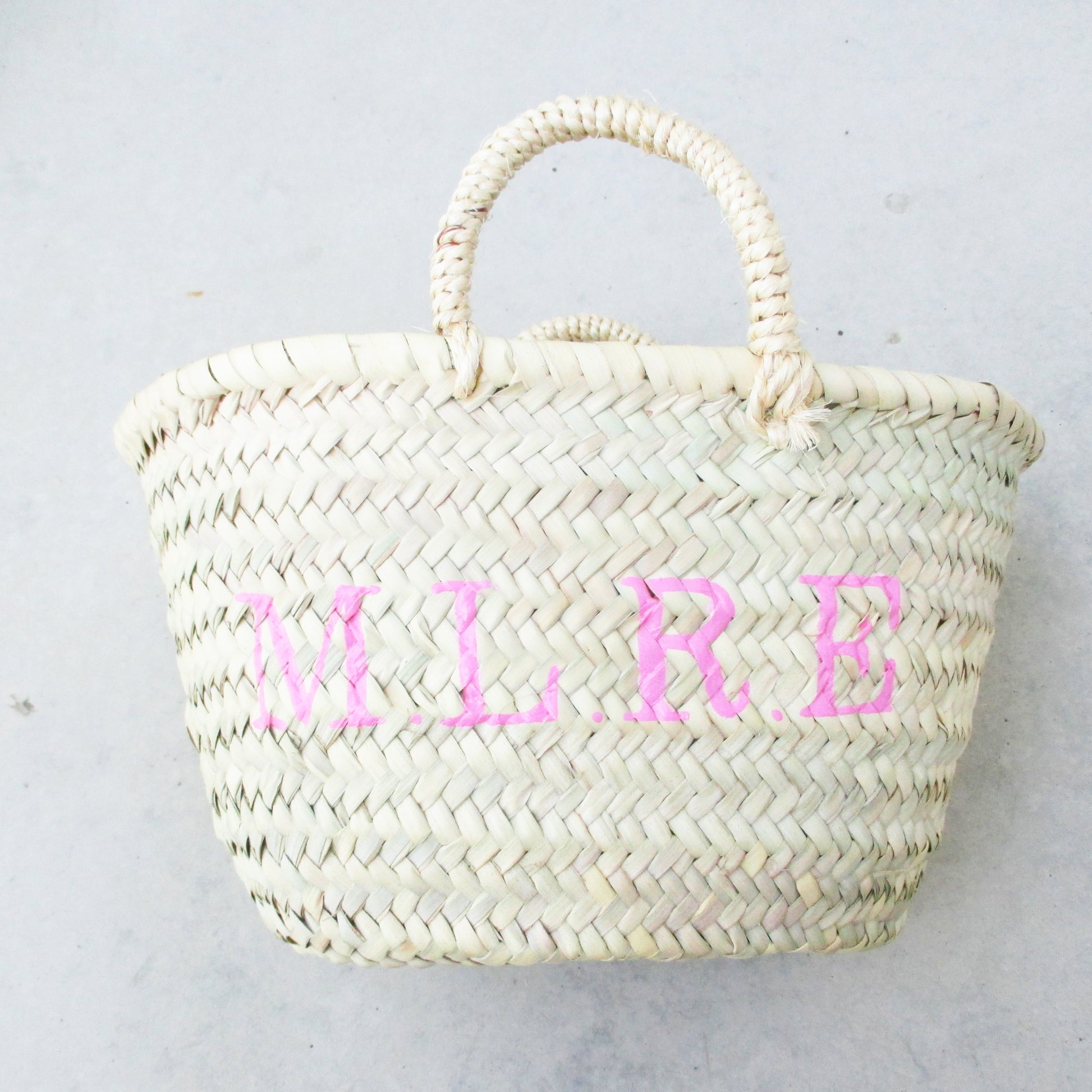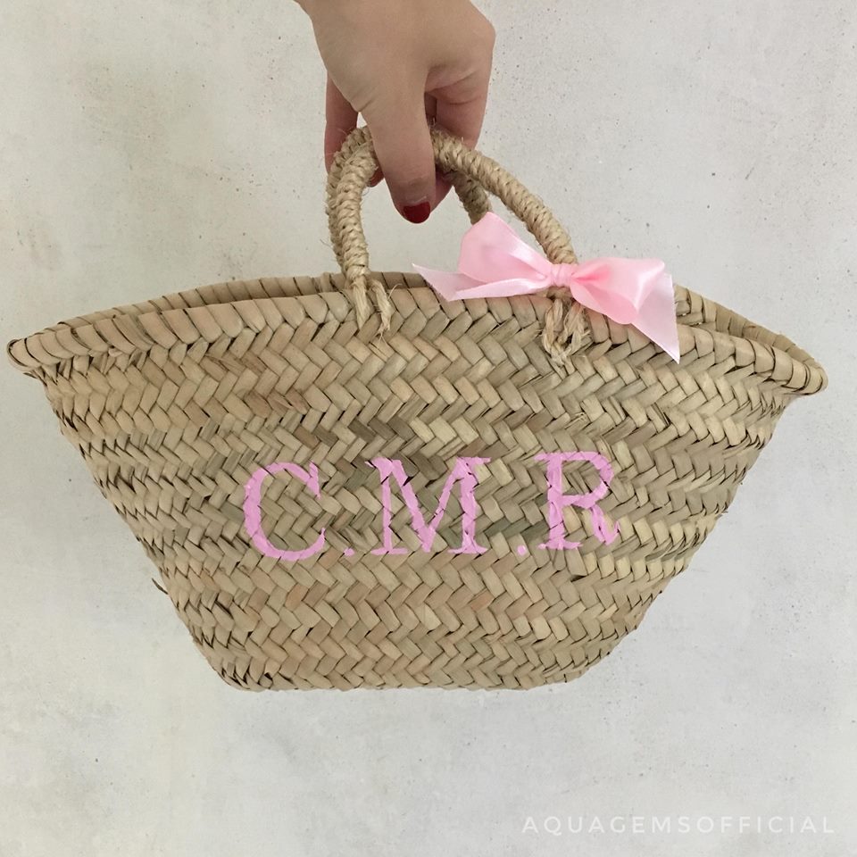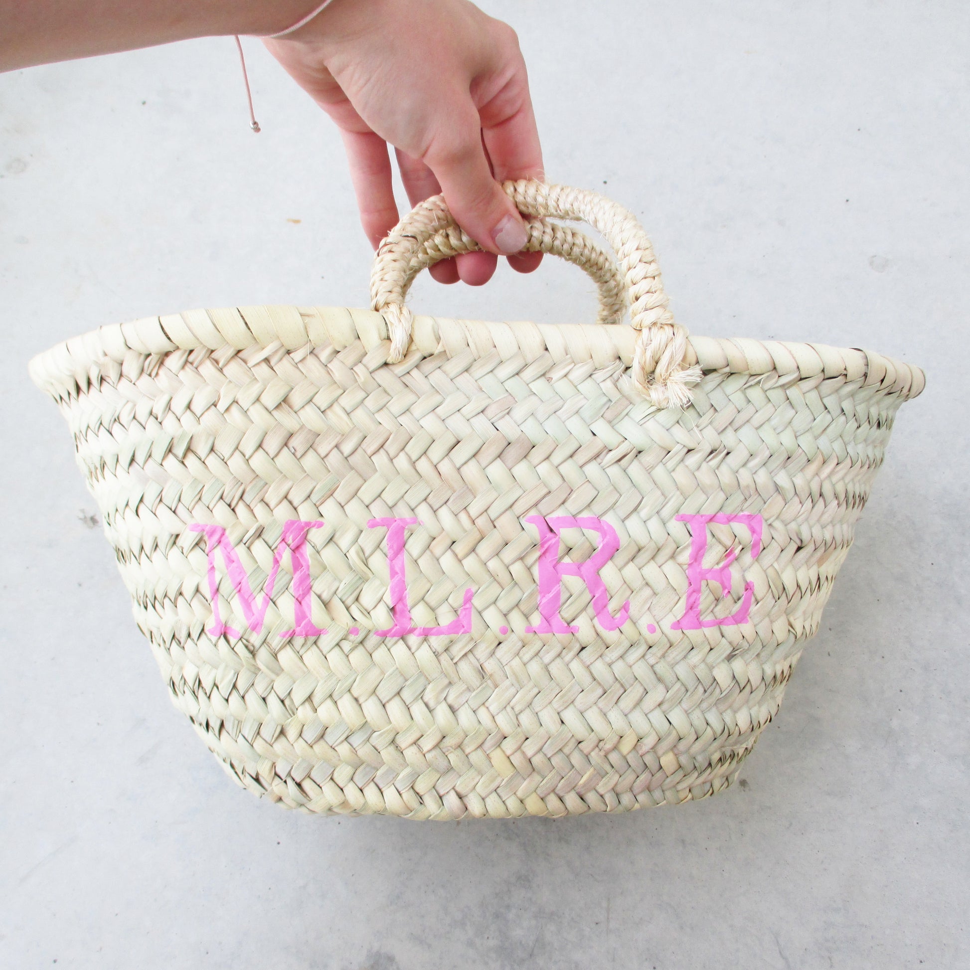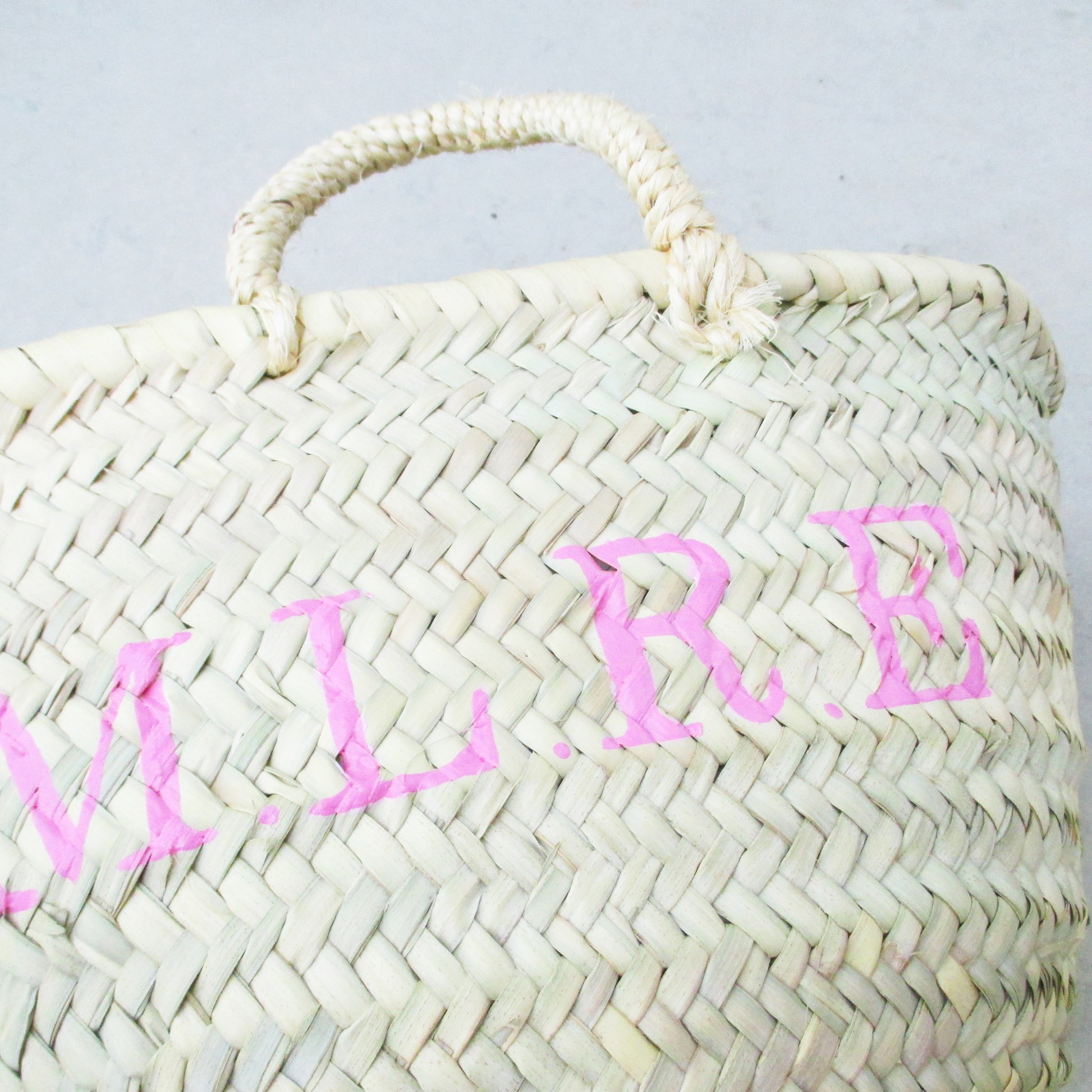 x Herkunft Korb Handgeflochten in Marokko. Personalisiert wird das Körbchen von Hand im Atelier in Stuttgart