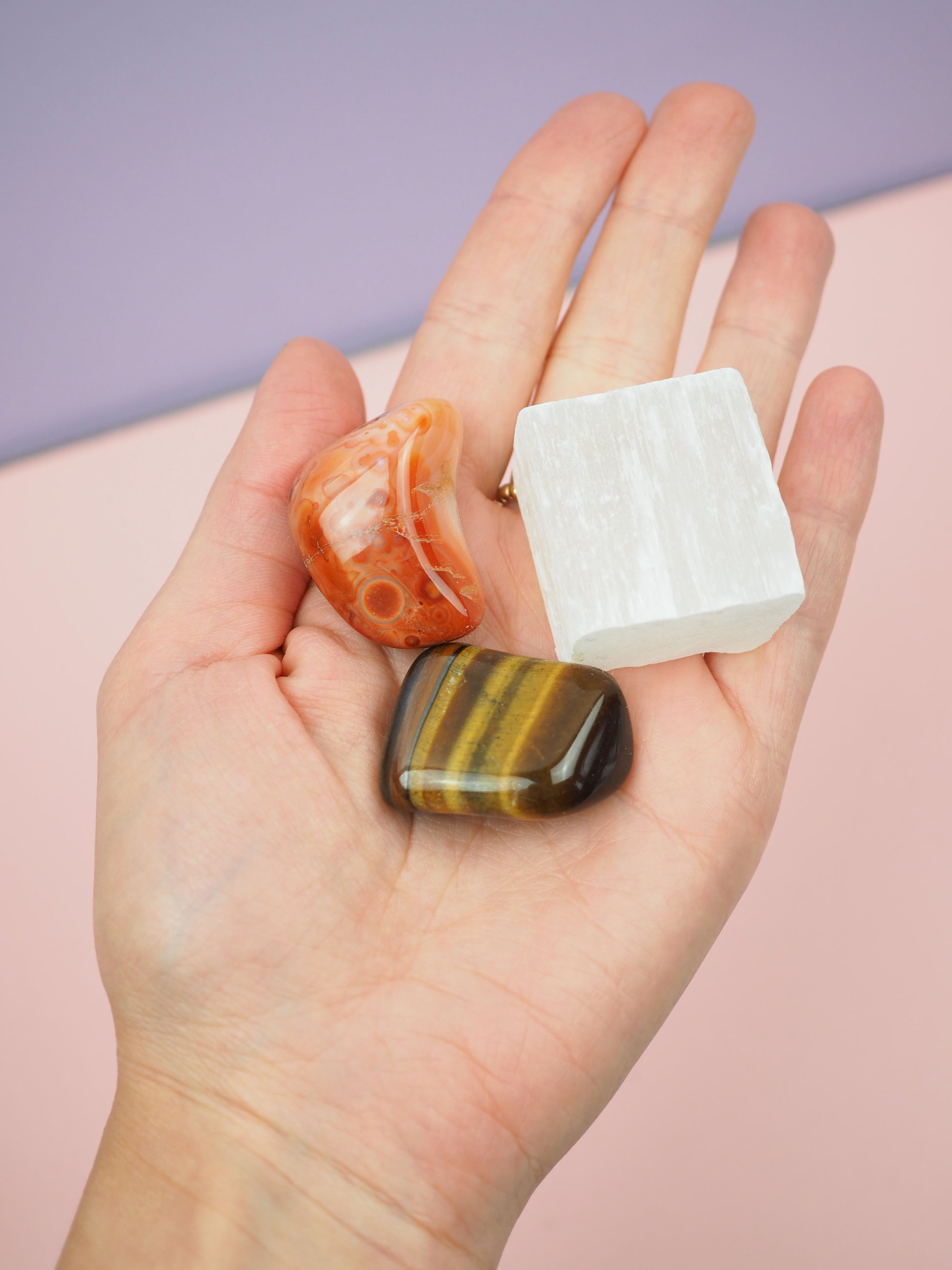 x Enthaltene Kristalle : Tigerauge, Roher Selenit, Karneol