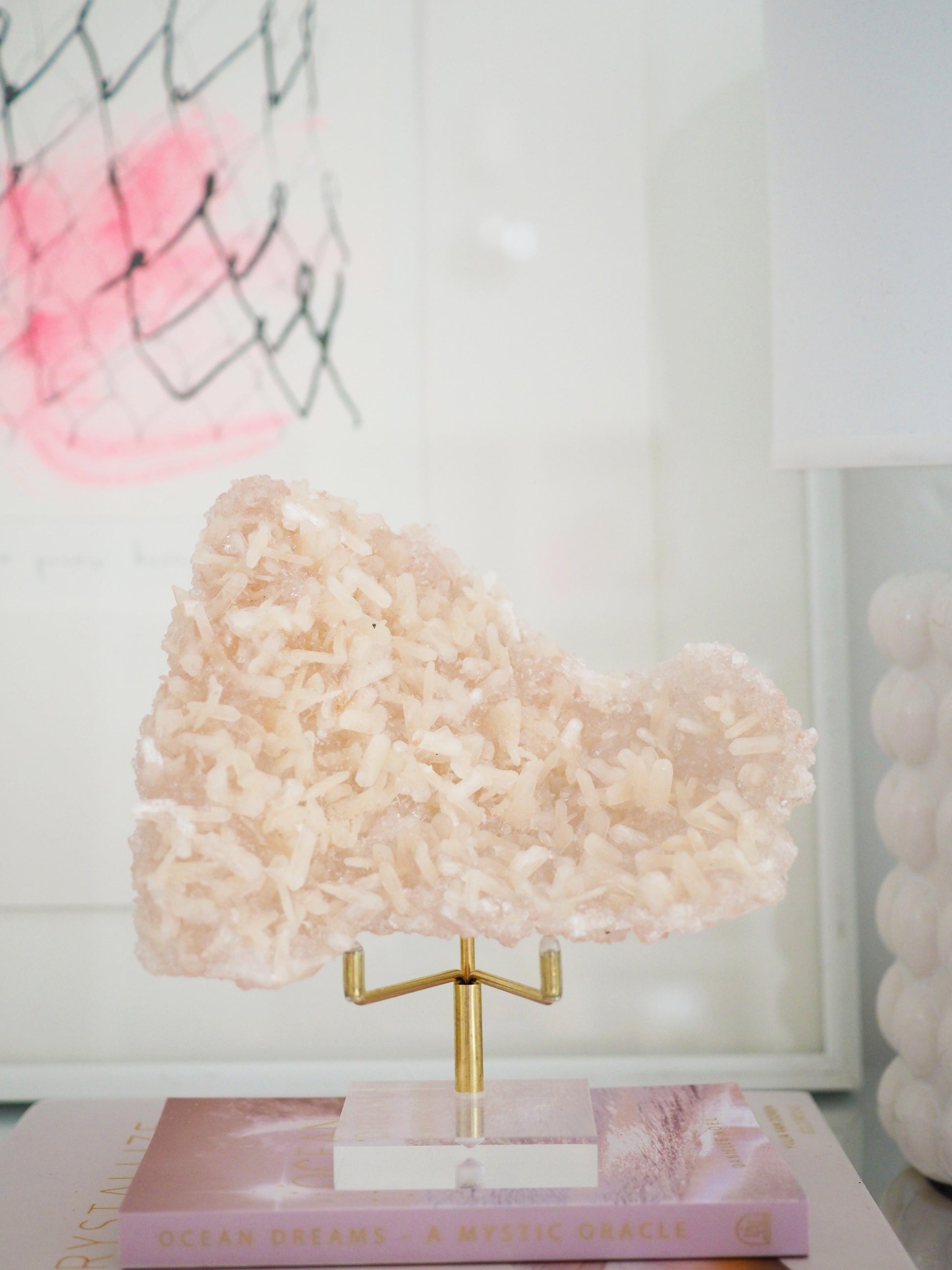 Diamond Crust Apophylite in Pink mit Stilbit, was will man mehr? Er Glitzert und funkelt und zieht einen sofort in seinen Bann.