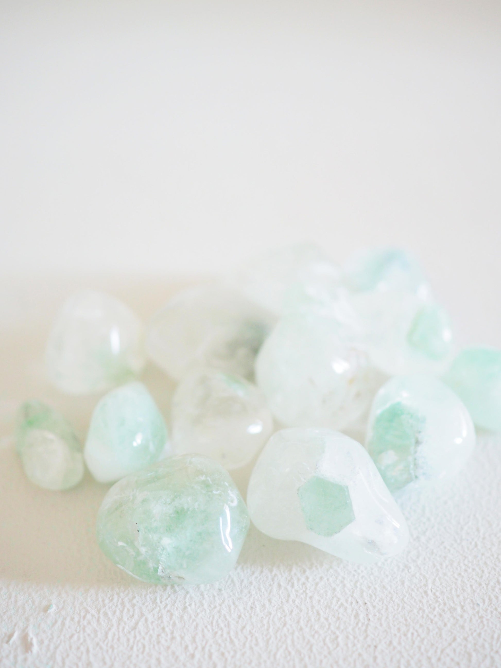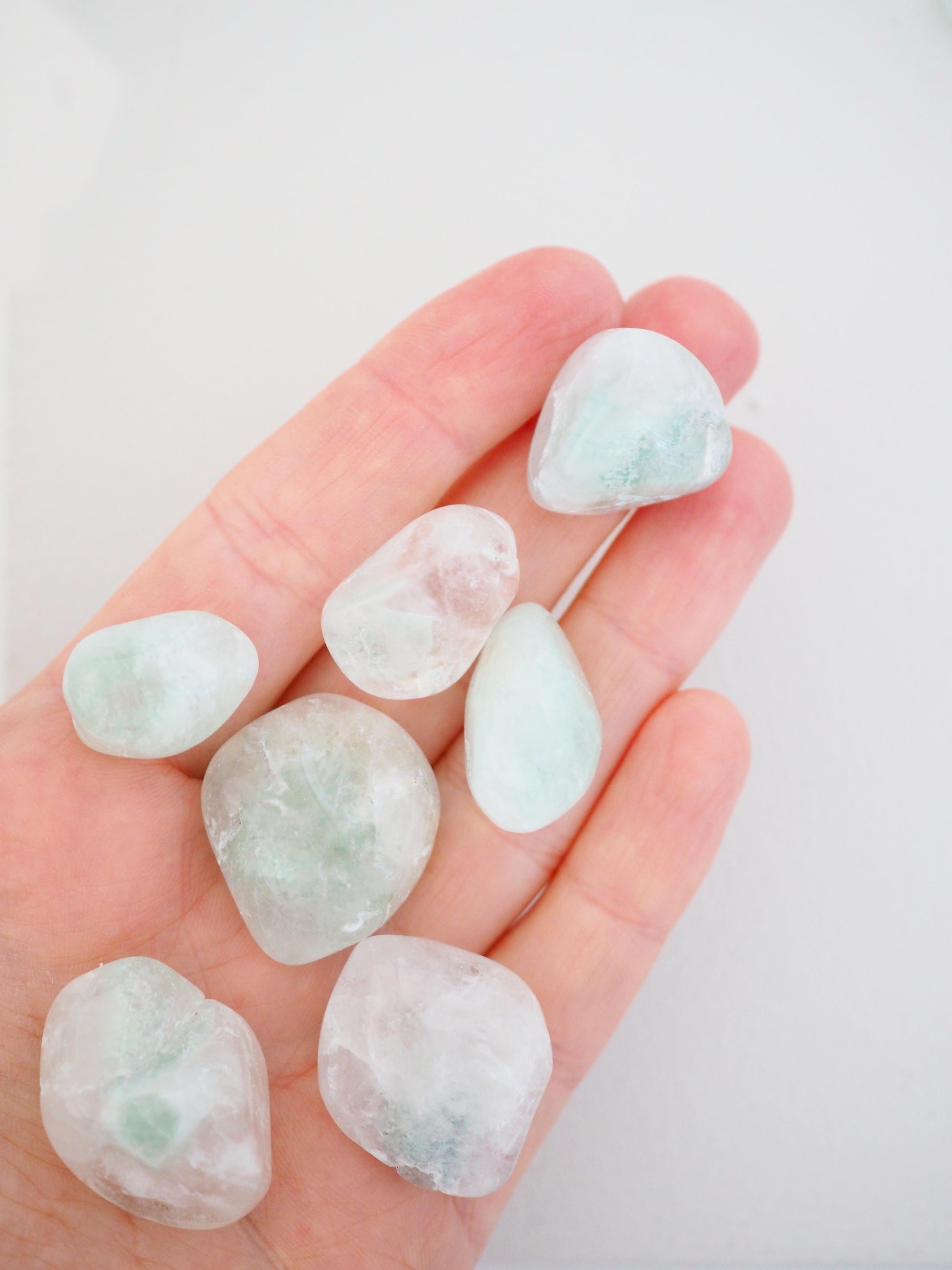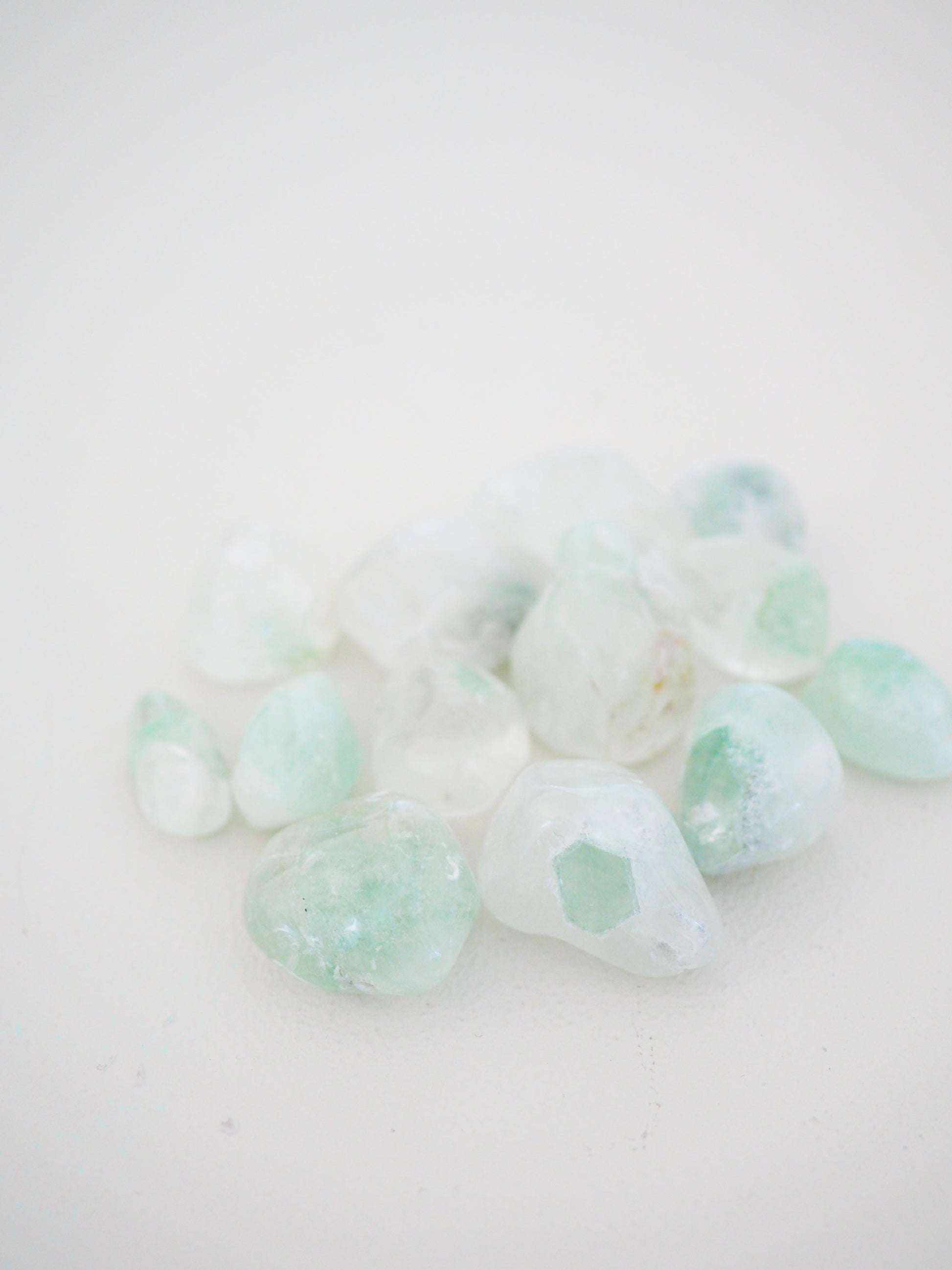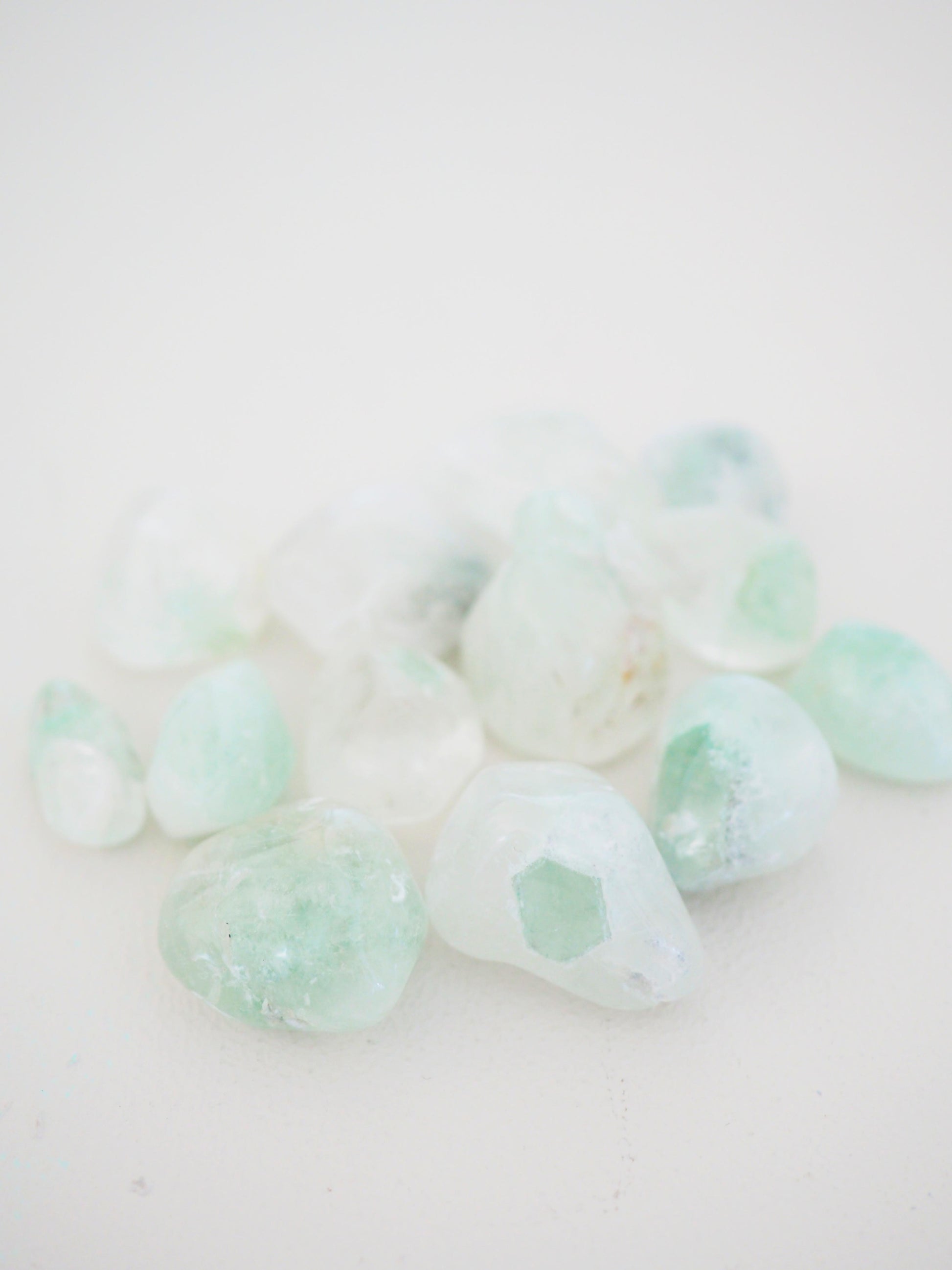 Magischer, grüner Fuchsit in Quarz in Trommelstein Variante. Sehr selten, wir haben nur ein paar wenige Schätze auf lager.