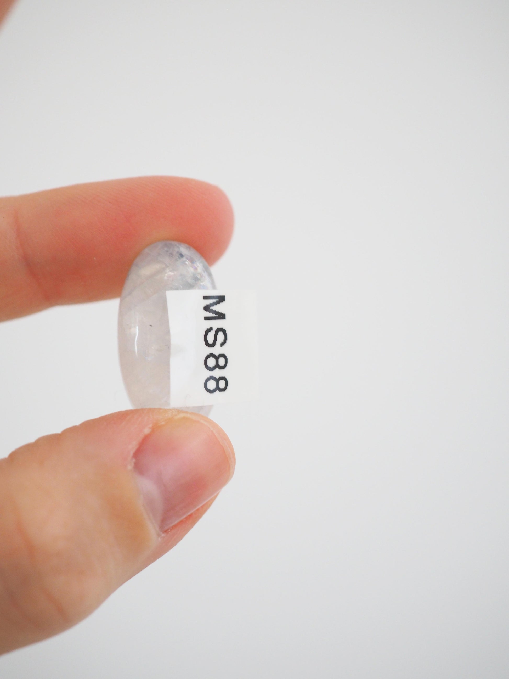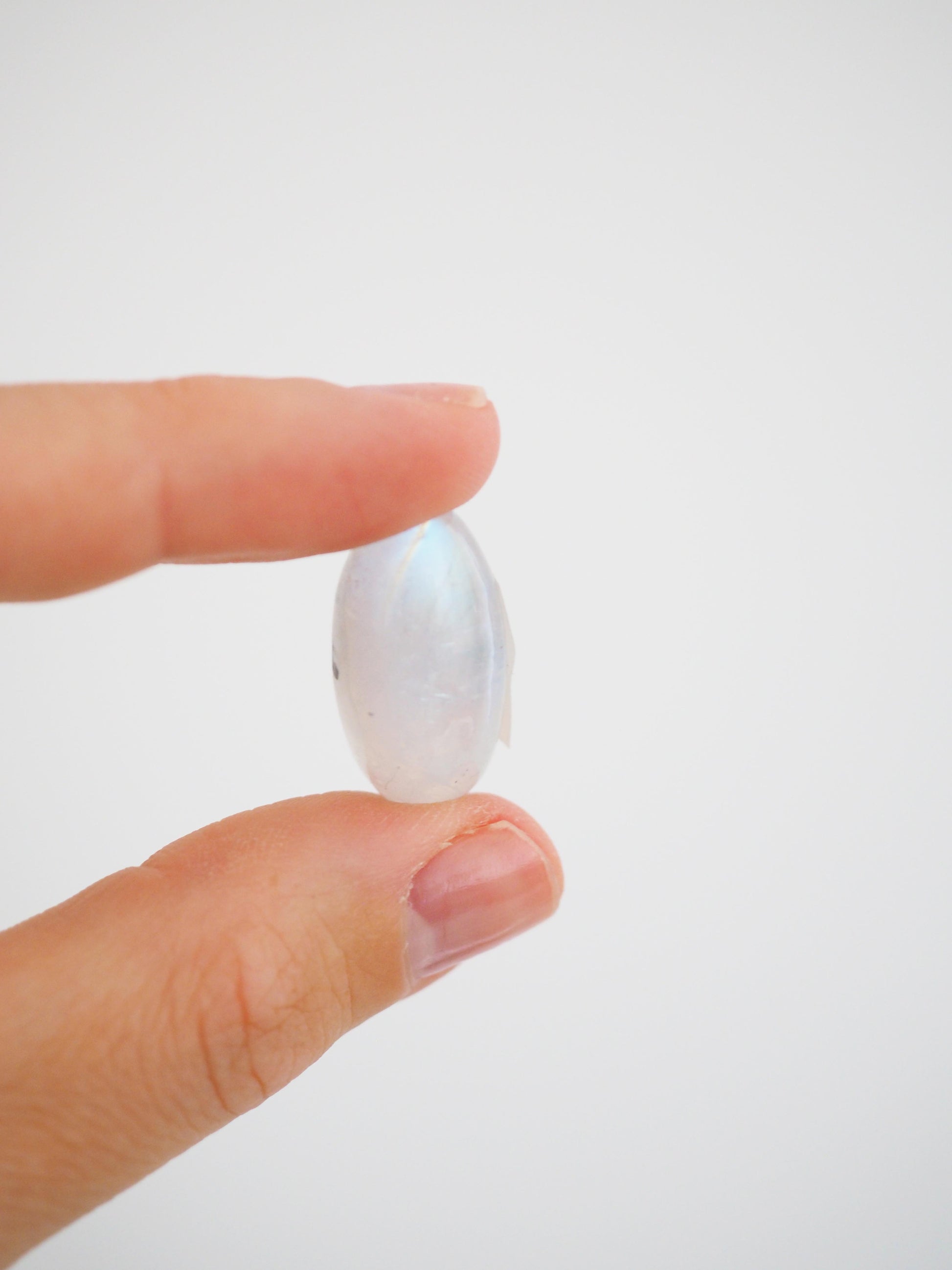 Weisser Mondstein aus Tansania, mit weiss / blauem Flash.