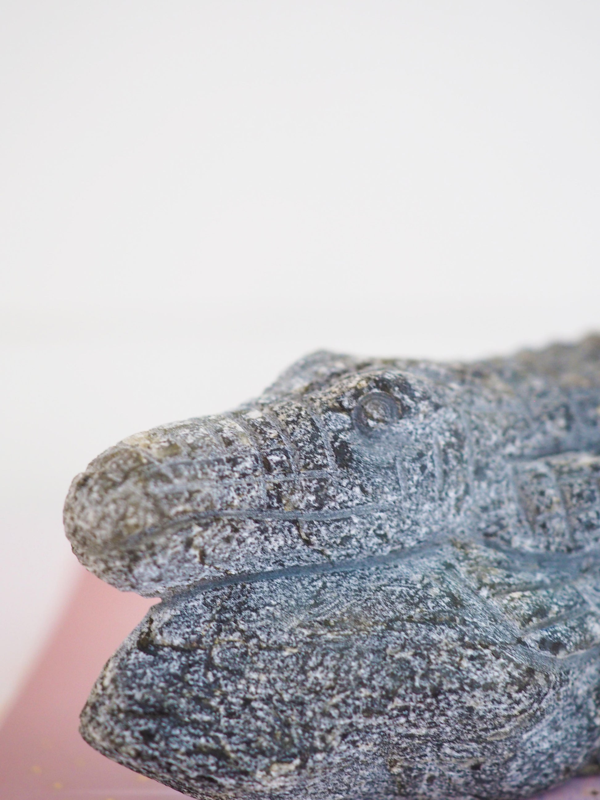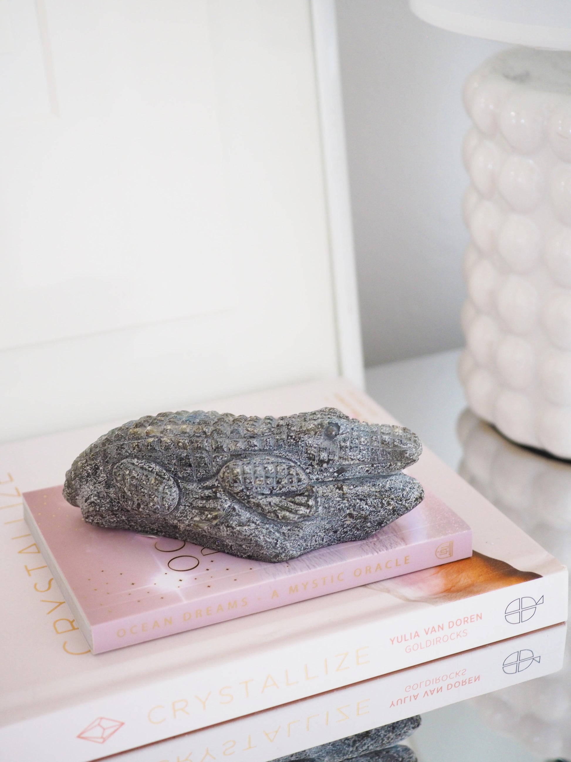 Labradorit Krokodil von Hand Graviert ohne Politur im rohen Stil. Wenn du es nass machst, setzt es für kurze zeit seinen magischen Schimmer frei. Wenn du es mit einem Mineral Öl einreibst, schimmert es für lange Zeit.