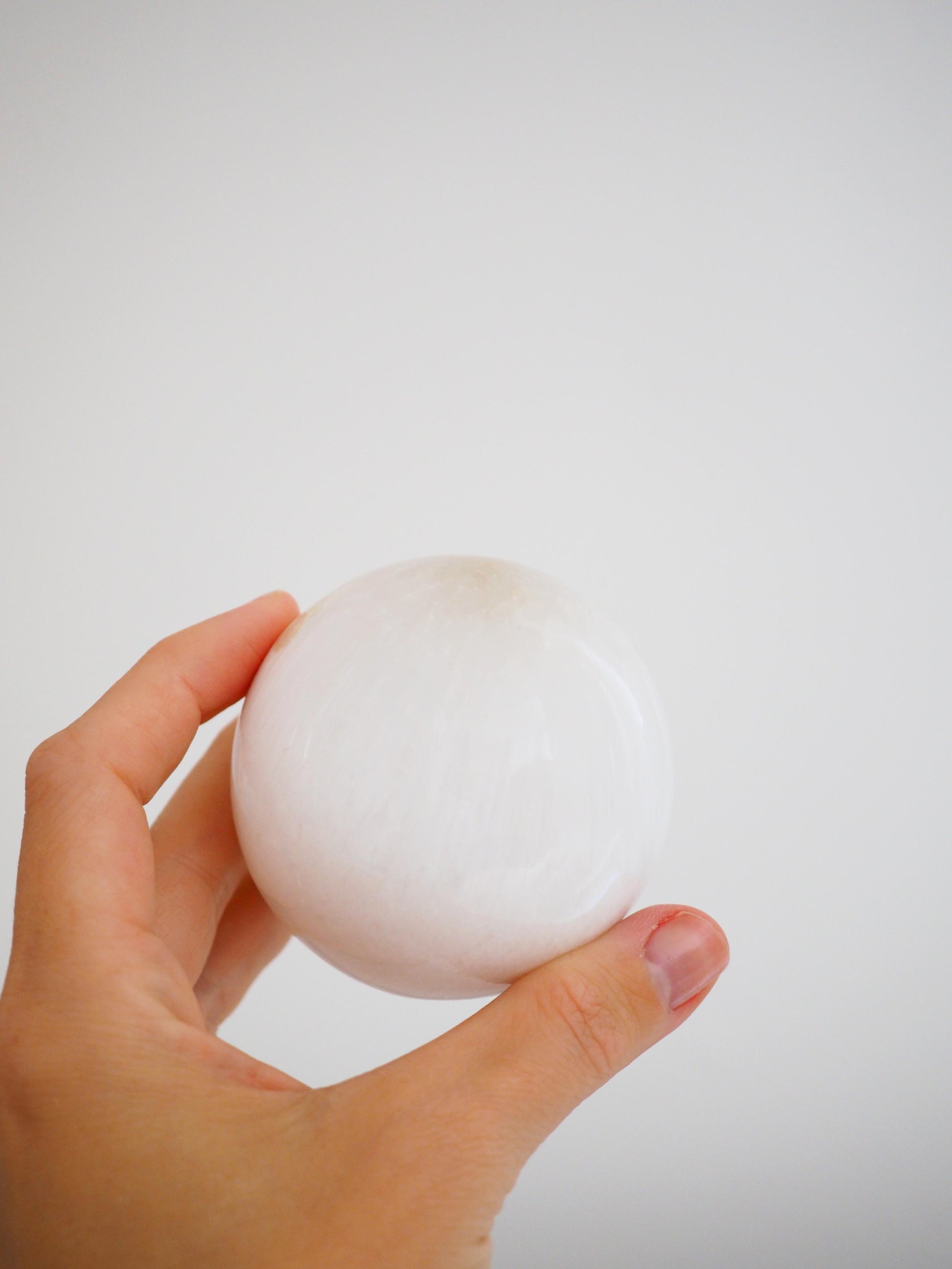 Skolezit mit magischem weissen Schimmer in Kugel Form.