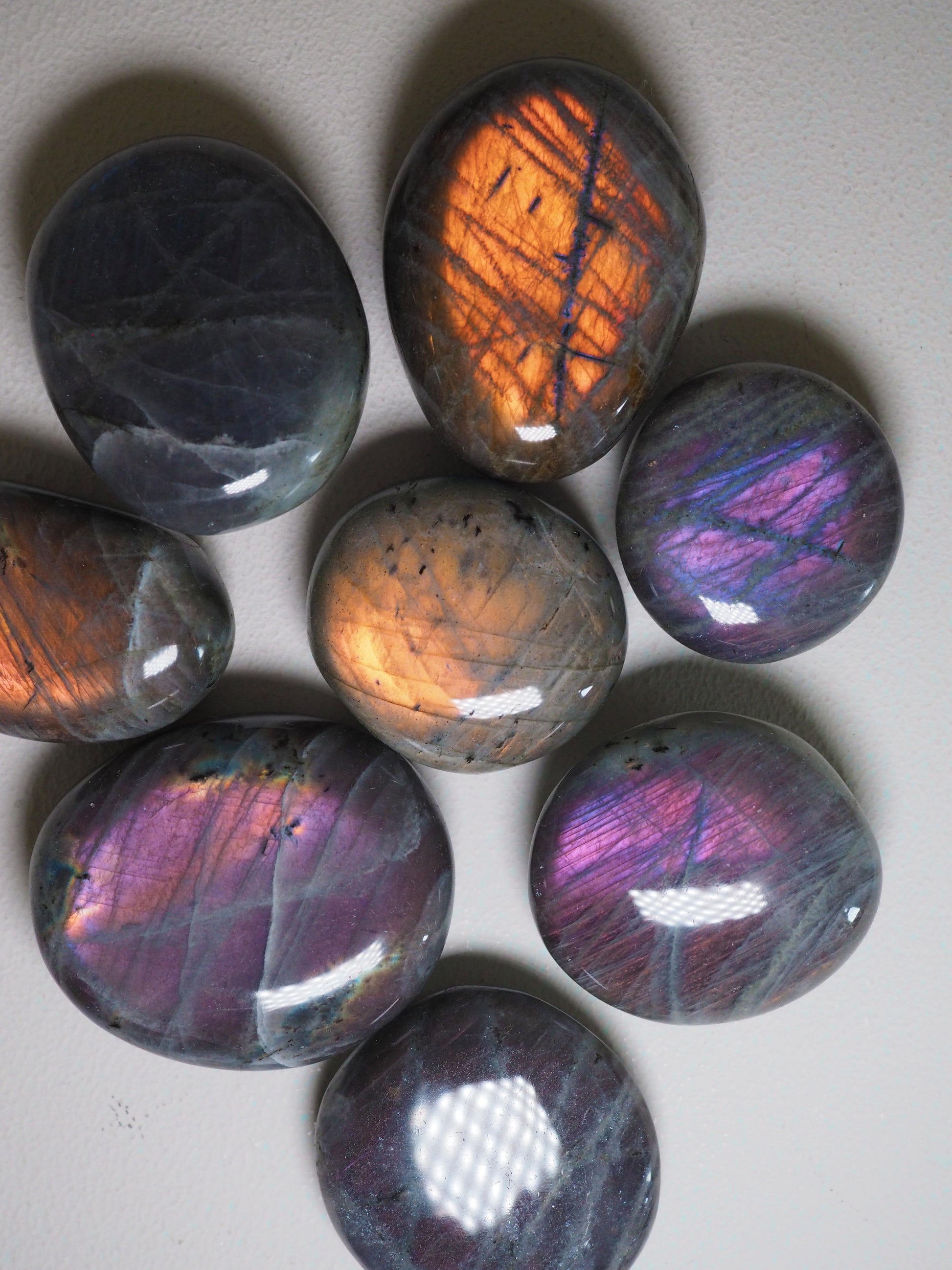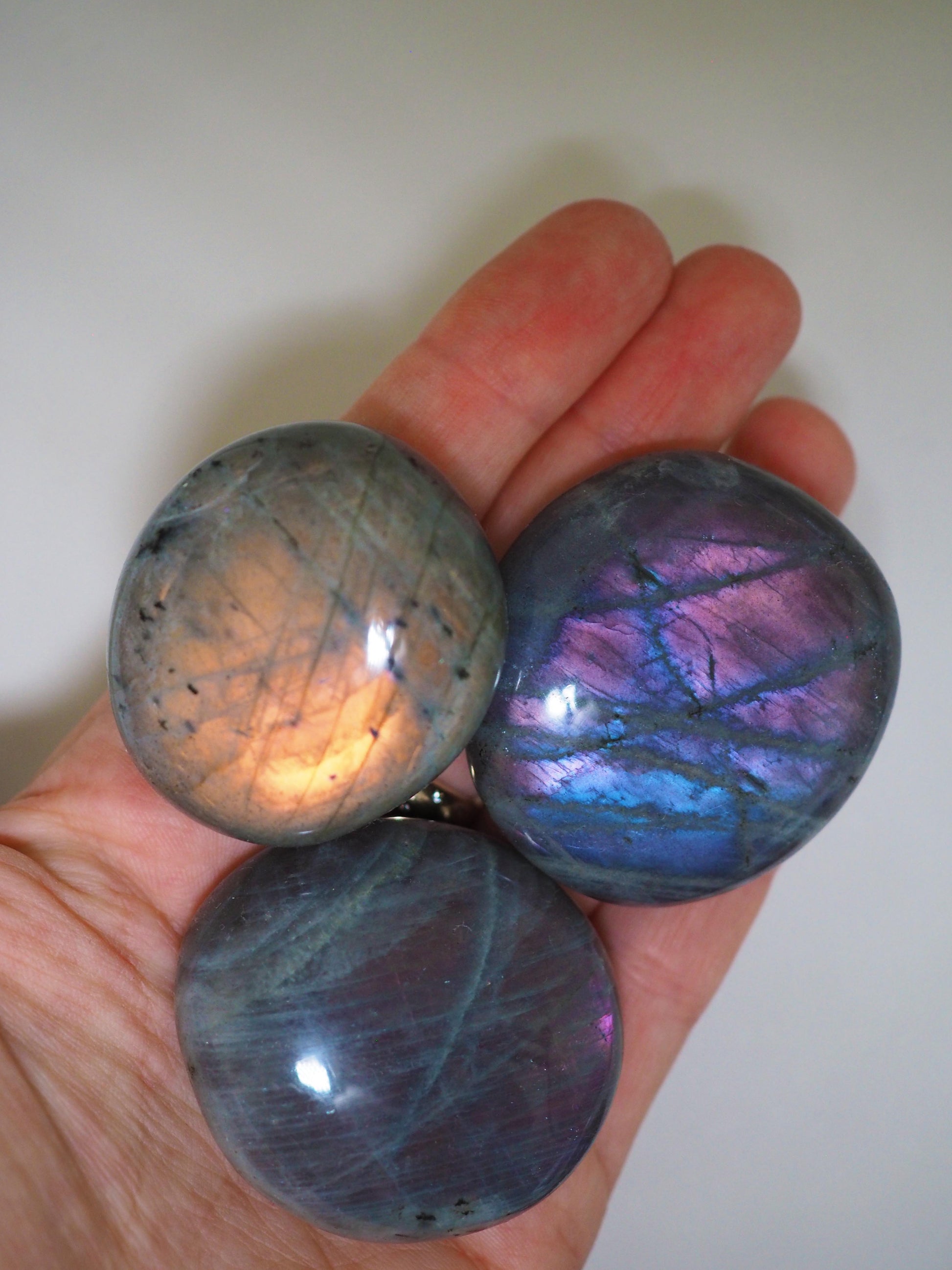 Sunset Mermaid Labradorit Palmstone Seifenstein Handstein ca. 3-4.5 cm - Aus Madagascar Hand poliert HIGH QUALITY