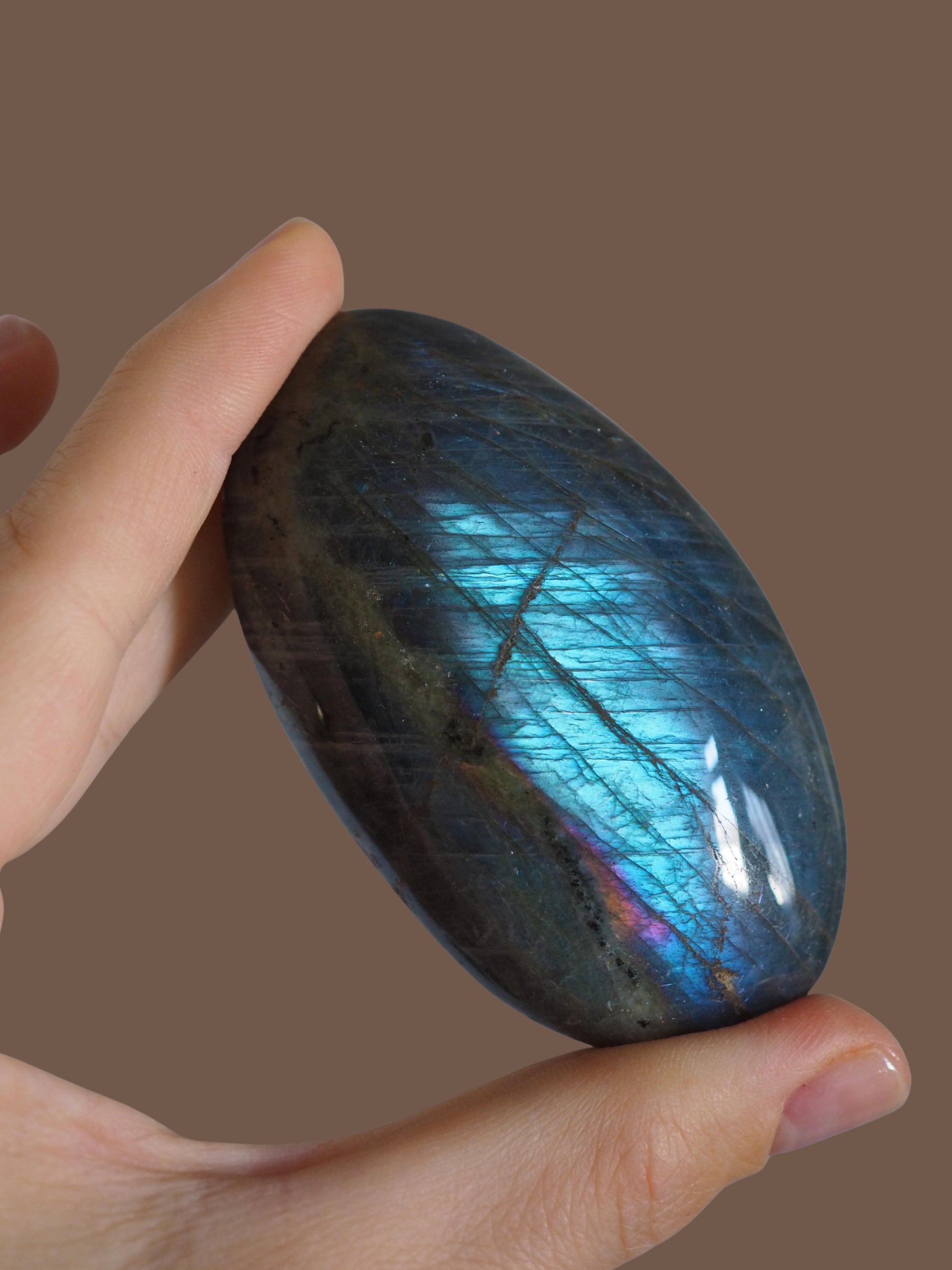 Sunset Mermaid Labradorit Palmstone Seifenstein Handstein ca. 7.5 cm - Aus Madagascar Hand poliert HIGH QUALITY