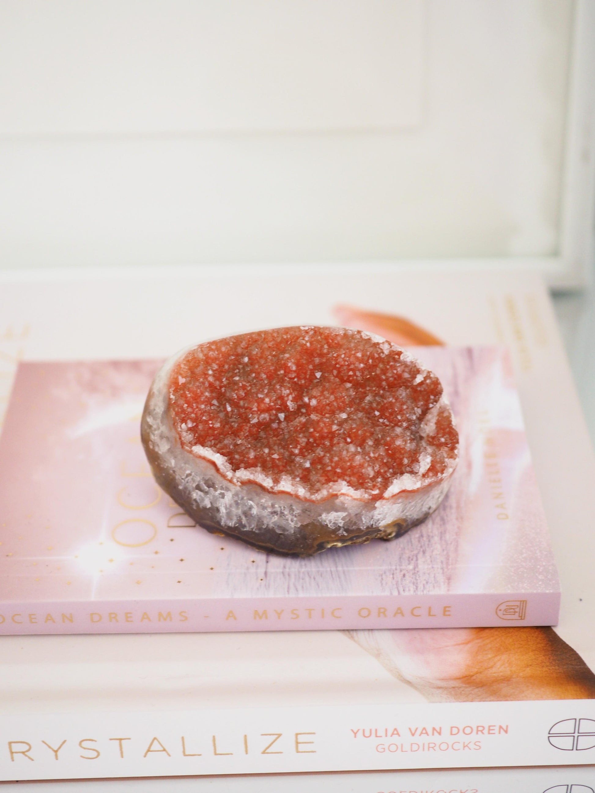 Traumhaftes, rotes Sugar Amethyst Cluster mit poliertem Rand.
