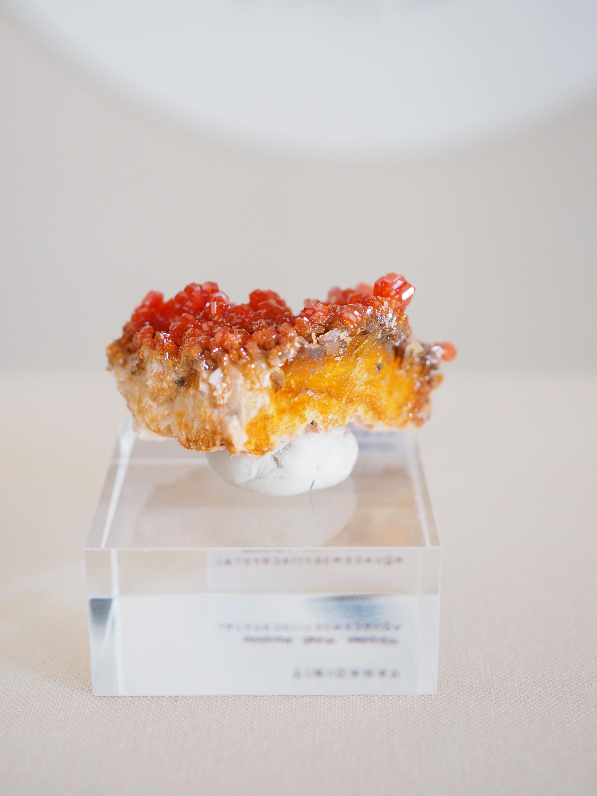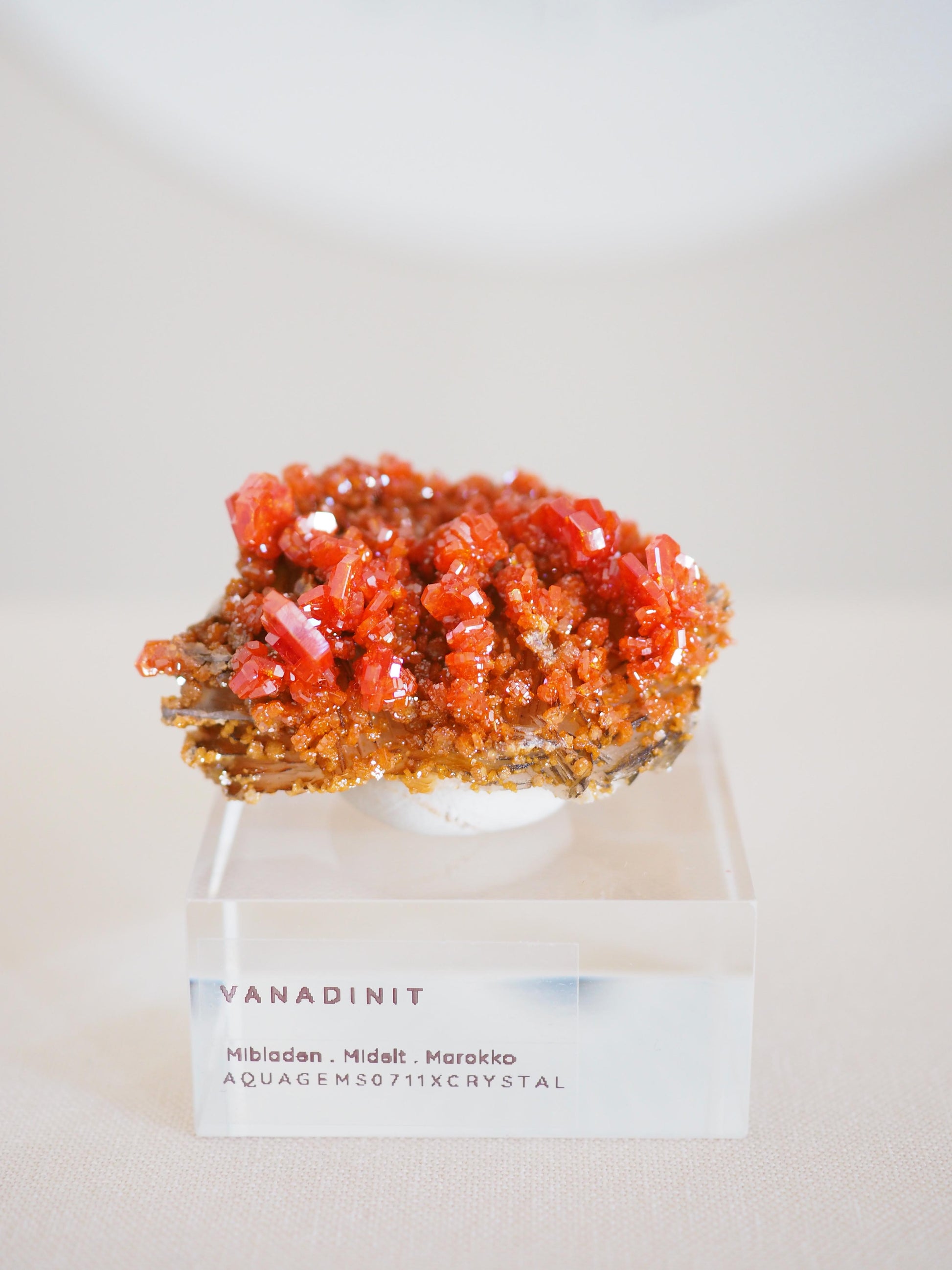 Auf dem Sockel ist der falsche Sticker, der Vanadinit kommt mit einer VANADNIT X BARYT Beschriftung.